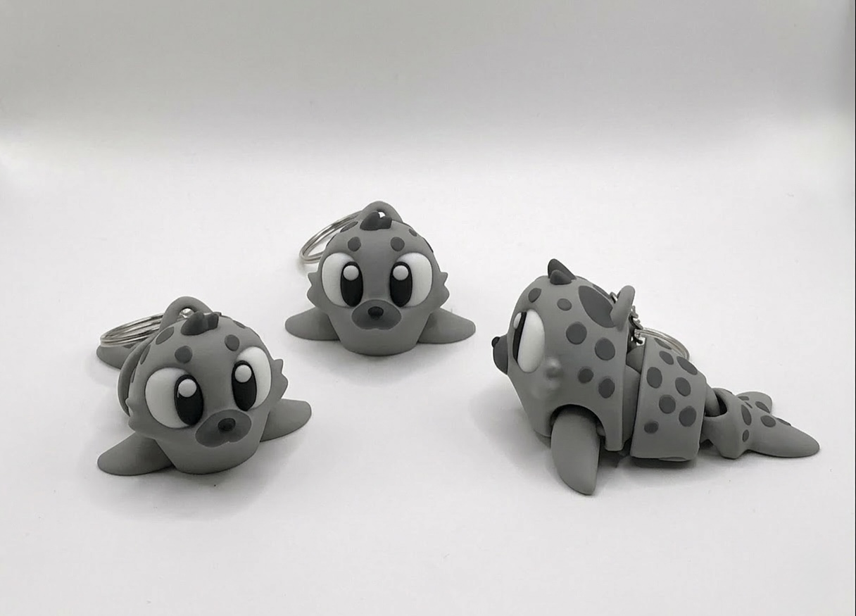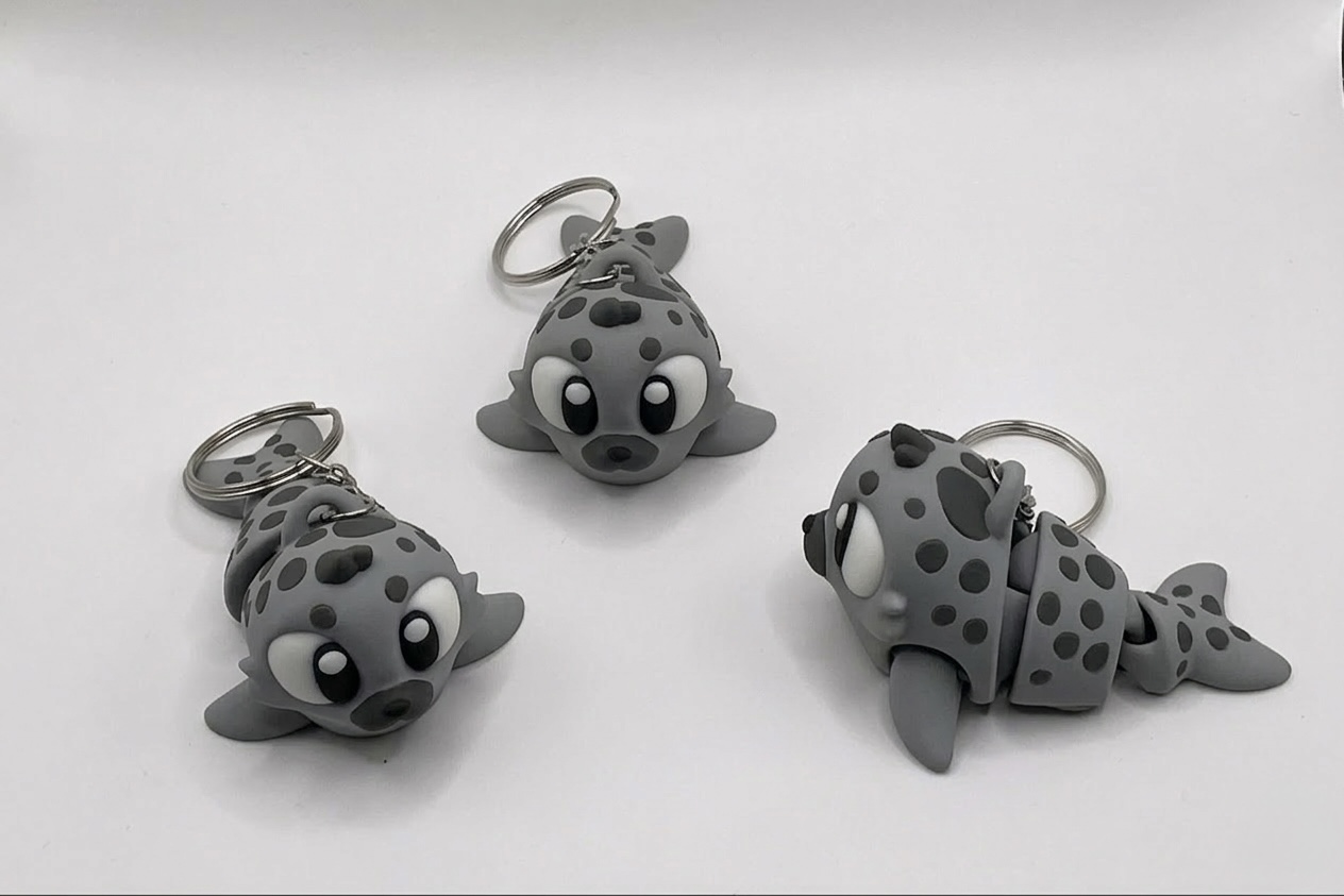 Niedlicher 3D-gedruckter Robben-Schlüsselanhänger in weichen Grau- und Weißtönen. Liebevoll gestaltet, stabil und kindgerecht – perfekt zum Sammeln, Verschenken oder als maritimer Begleiter am Schlüsselbund!